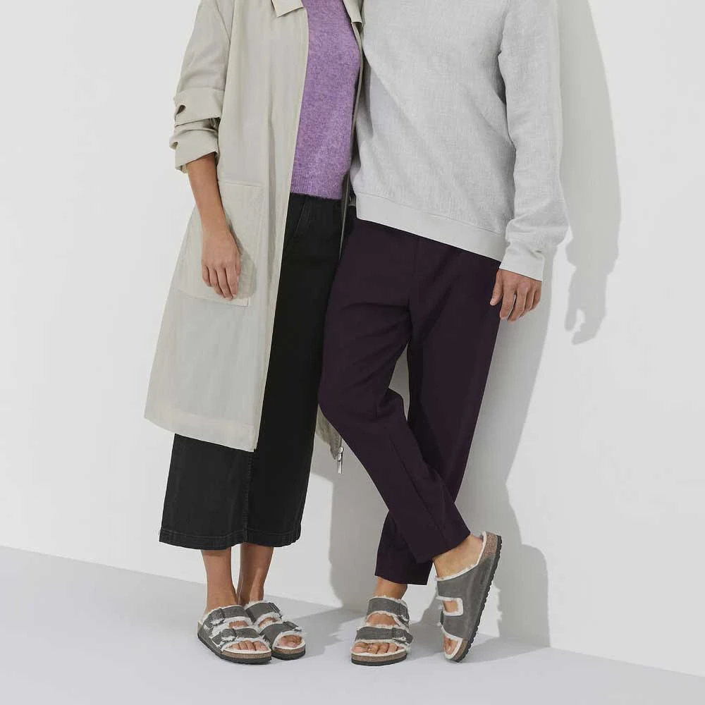 The legendary two-strap design from BIRKENSTOCK – the Arizona. Iconic style with the signature comfort of the BIRKENSTOCK footbed. Now available in an extra cozy version thanks to a soft, bright genuine shearling lining on the anatomically formed cork-latex footbed and straps. The upper is made from extra thick, oiled nubuck leather with an open-selvage finish.